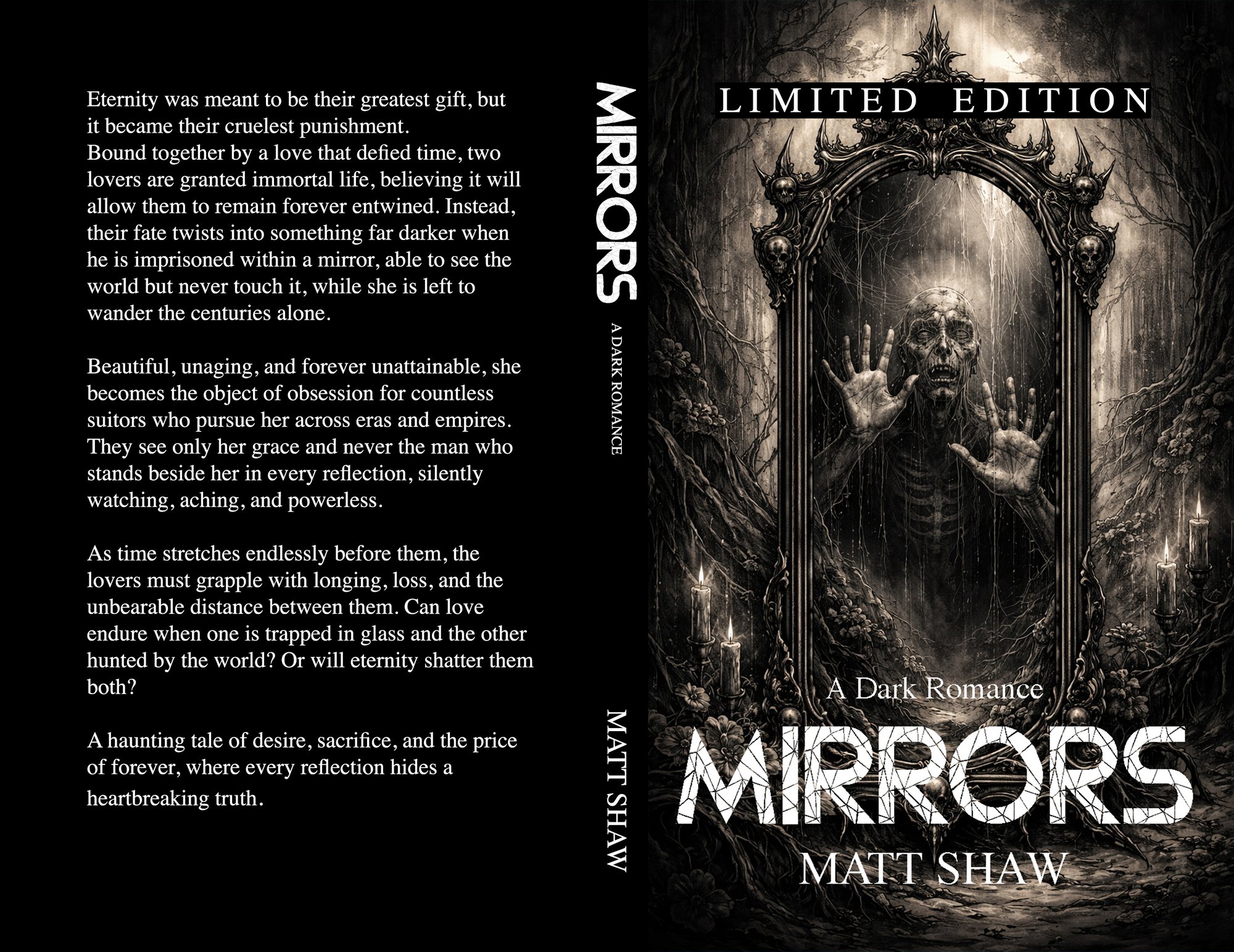 Bound together by a love that defied time, two lovers are granted immortal life, believing it will allow them to remain forever entwined. Instead, their fate twists into something far darker when he is imprisoned within a mirror, able to see the world but never touch it, while she is left to wander the centuries alone.